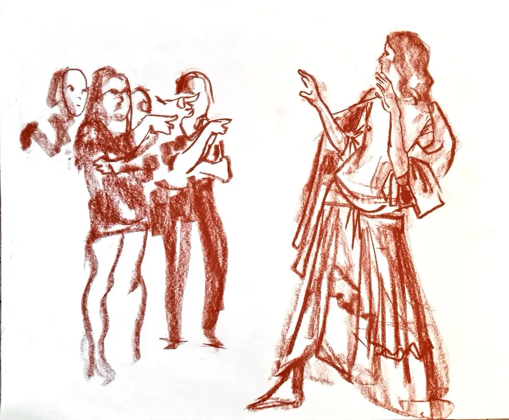 Entre immobilité & mouvements, dynamisme & lenteur, les poses s’enchaînent et racontent une histoire… Une histoire sans paroles, une histoire presque figée, une histoire à observer, une histoire à dessiner…