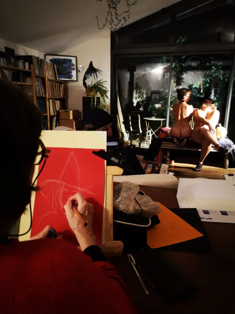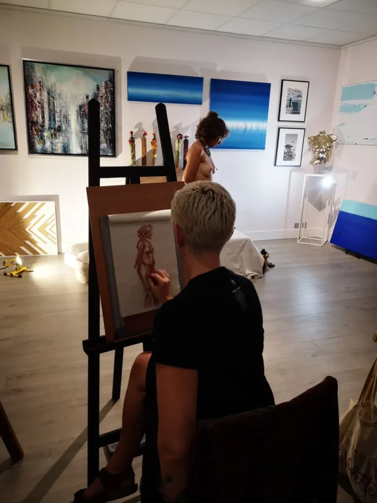 Tous nos ateliers, qu’il s’agisse de dessin, peinture, modelage, sculpture, se déroulent avec un modèle. Pour une meilleure observation du corps humain, les modèles sont, la plupart du temps, nu·es.